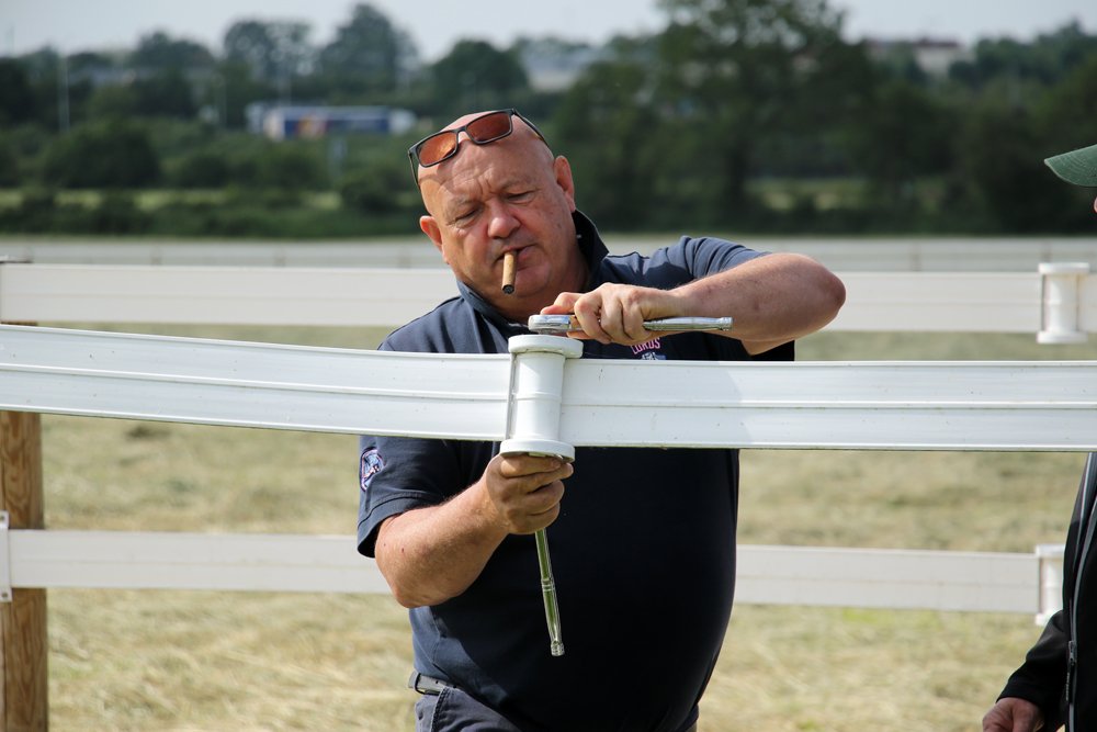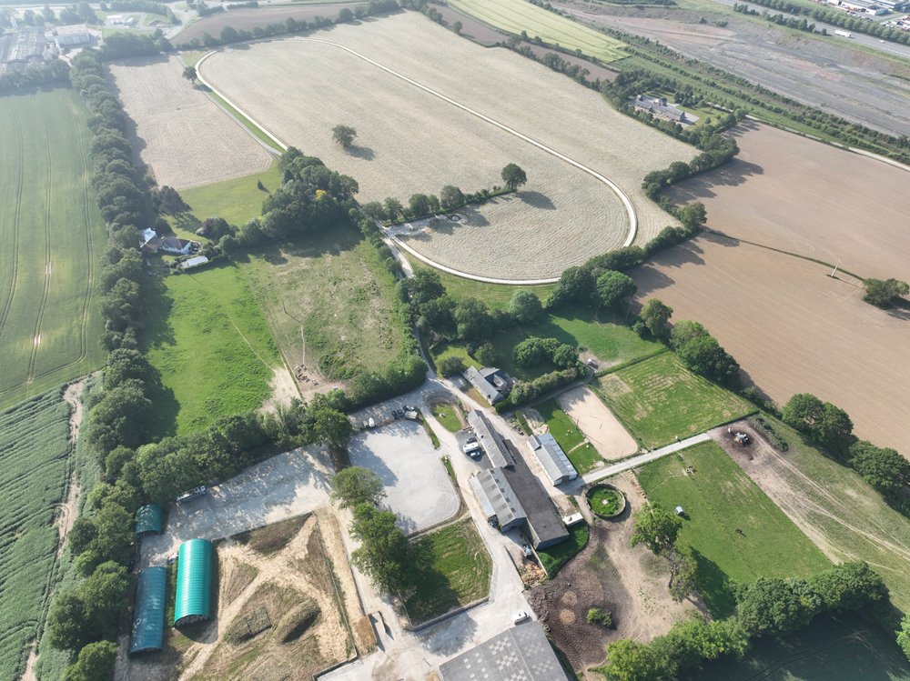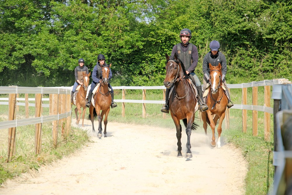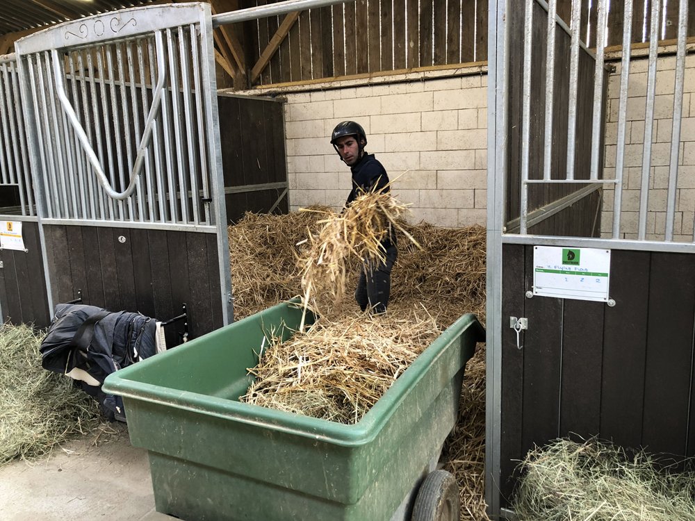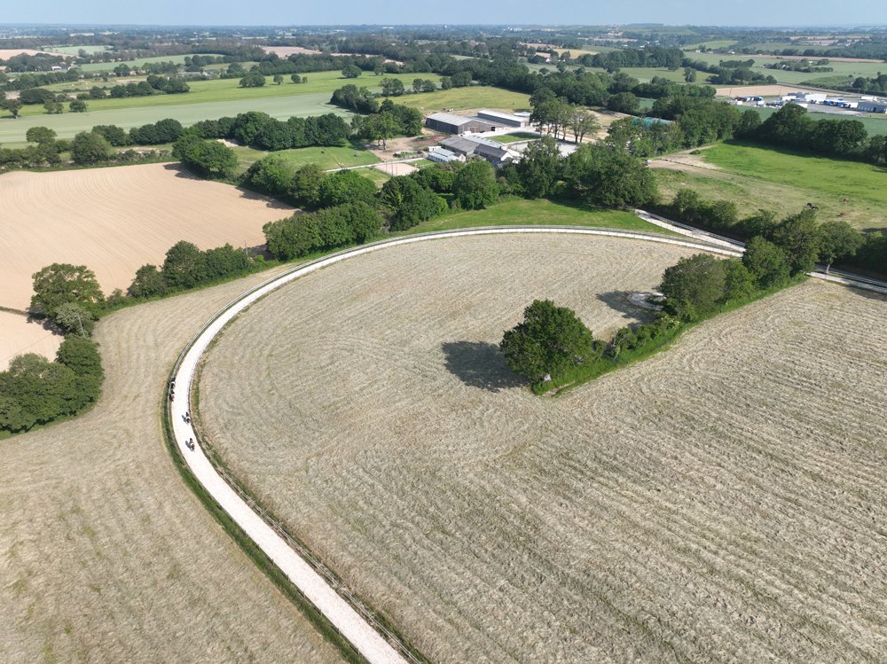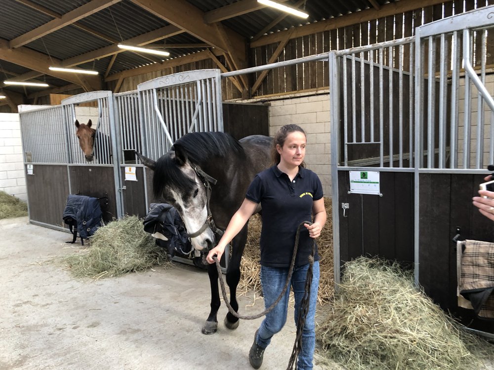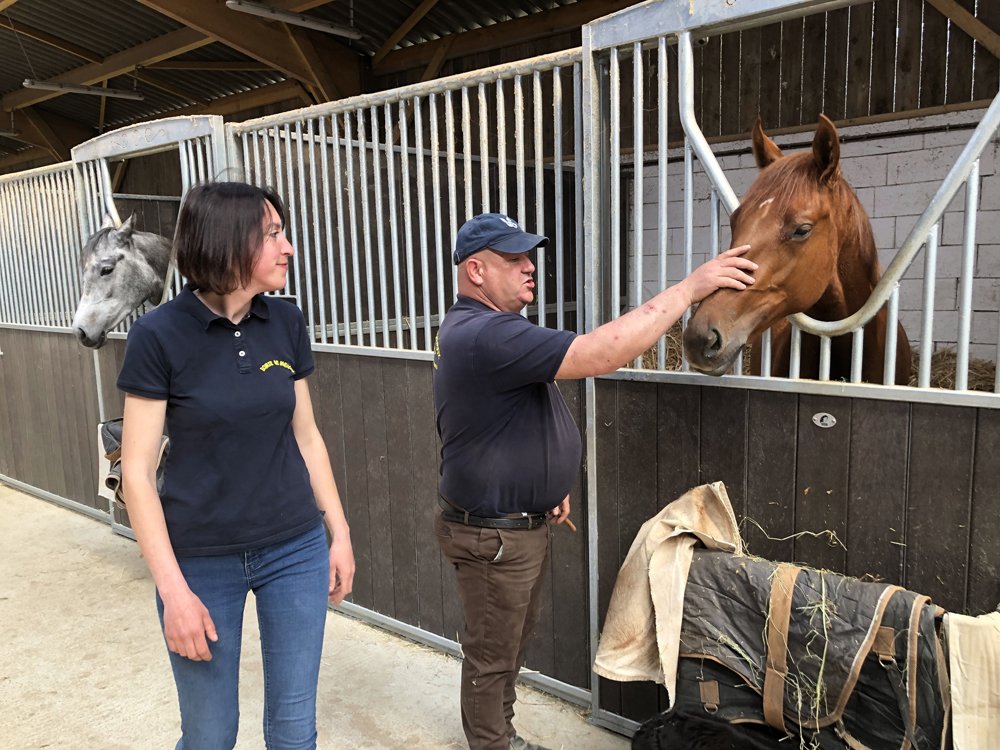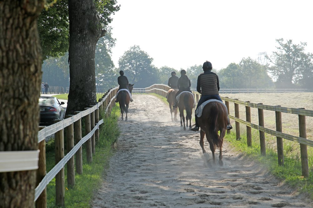 L'Ecurie de Grenoux s'étend sur 30 hectares d'un seul tenant à Saint-Berthevin, près de Laval en Mayenne. Une piste de 1200 m a été tracée avec du sable de chez Guimard. La piste est en dénivelé, avec 2 lignes droites de 400 m. Les structures ont été améliorées en 2017 avec la construction d'un vaste bâtiment abritant 31 boxes ainsi qu'un marcheur 6 places et un grand manège couvert de 1000 m2 qui permet de sortir les chevaux à l'abri même en cas de forte intempérie. Pour répondre à la demande croissante, l'Ecurie de Grenoux a ériger un nouveau barn en parallèle du premier, comme une copie améliorée. Ce nouveau bâtiment comporte 30 boxes encadrant un couloir plus large, et y sont collés 1 marcheur couvert ainsi qu'un rond de long également couvert mais très bien aéré et même arrosé automatiquement de l'intérieur ! Le débourrage est effectué par une seule personne au sol puis à cheval. Toutes les manipulations sont tout d'abord réalisées au box, puis dans le manège couvert, en reprenant à chaque fois toutes les opérations à zéro. Dès que le jeune cheval est monté, il effectue des exercices dans le manège puis dans la grande carrière extérieure, emmené par un poney leader. Une fois bien mis, le cheval pourra s'exercer et commencer son pré-entrainement. La remise en forme, comme le pré-entrainement proprement dit, est réalisé à la carte selon les demandes des propriétaires ou des entraineurs, au niveau du fond ou de la vitesse. La fluidité du dessin de la piste permet en effet d'avancer sérieusement les pensionnaires si le propriétaire le souhaite. Dans le cadre d'une écurie de jeunes chevaux où les mouvements sont fréquents, l'équipe d'une 10aine de personnes porte une attention toute particulière à l'hygiène. Les nouveaux pensionnaires sont tous placés dans les boxes de quarantaine en arrivant. Les chevaux ont tous leur propre tapis et torchon de sangle, lavés une fois par semaine. De même, tous les harnachement sont désinfectés entre chaque lot. Par ailleurs, Audrey de Clerck, qui effectue minutieusement tous les soins, remplit des fiches de renseignement au quotidien pour chaque pensionnaire, au terme sanitaire, niveau de travail et comportement. En effet, une personne s'est spécialisée dans la sensibilisation, qui permet en seulement 2 ou 3 séances de rendre un poulain serein face aux éléments extérieurs inattendus. Capacité de 80 boxes : 1 barn de 31 boxes 3.50m x 3.50m 1 barn de 30 boxes idem Barn de quarantaine de 13 boxes entièrement rénovés 6 boxes extérieurs 1 grand manège couvert de 20x50 m 1 rond de long couvert avec arrosage 2 marcheurs automatiques de 6 places couverts 1 carrière extérieure de 30x60m 1 piste de 1200 m en sable Guimard avec 2 lignes droite de 400 mètres Clôtures Horse Rail sur toute la structure